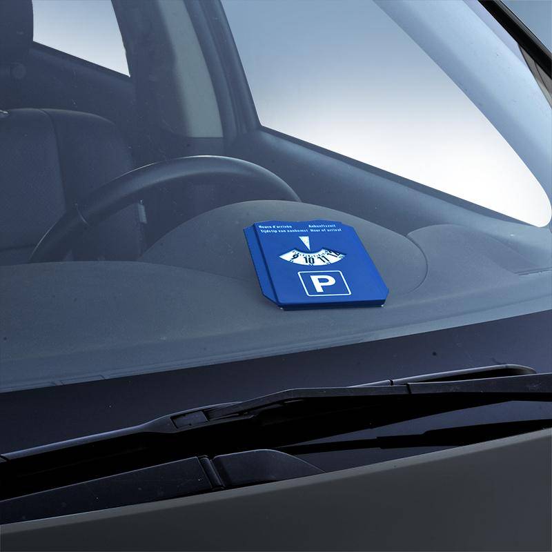 Dysk parkingowy to płaski biały dysk w niebieskim etui. Używasz go do wskazania czasu, w którym zaparkowałeś swój samochód na parkingu. Czas parkowania jest ograniczony. Zwykle są to dwie godziny. Za pomocą dysku parkingowego można zaparkować w tak zwanej niebieskiej strefie.